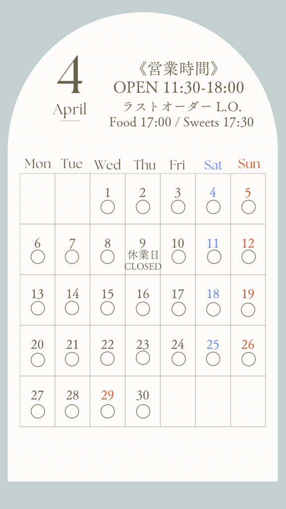 【4月の営業スケジュールです】